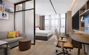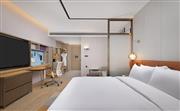 生活吧、定制冰箱、微波炉、免费 WiFi、沙发床、宽敞浴室。宽敞现代的灵动豪华房(大床)提供额外空间和设施,包括一张特大床,房间面积为39平方米,创新的隐私屏、灵活的家具布置和创意区,为休闲、烹饪、工作提供灵活空间。放松的起居区配有沙发床,旋转式 55 英寸电视可从任何角度观看。利用移动桌和舒适座椅,营造出自己的空间。设施齐全的生活吧配备定制 80L 冰箱、微波炉、水槽、胶囊咖啡机及各种必要器具,方便在客房随时准备简餐。电饭煲、电磁炉等希尔顿惠庭旅居厨具配套,可应要求提供。宽敞的浴室配有大梳妆台、智能马桶和步入式淋浴间。储物收纳灵活多样,包括开放和封闭的衣柜,让您入住期间享用更多放松空间。