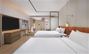 生活吧、定制冰箱、微波炉、免费 WiFi、宽敞浴室。宽敞现代的灵动豪华房(双床)提供额外空间和设施,包括两张 135x200cm 睡床,房间面积为39平方米,创新的隐私屏、灵活的家具布置和创意区,为休闲、烹饪、工作提供灵活空间。放松的起居区配有旋转式 55 英寸电视,可从任何角度观看。利用移动桌和舒适座椅,营造出自己的空间。设施齐全的生活吧配备定制 80L 冰箱、微波炉、水槽、胶囊咖啡机及各种必要器具,方便在客房随时准备简餐。电饭煲、电磁炉等希尔顿惠庭旅居厨具配套,可应要求提供。宽敞的浴室配有大梳妆台、智能马桶和步入式淋浴间。储物收纳灵活多样,包括开放和封闭的衣柜,让您入住期间享用更多放松空间。