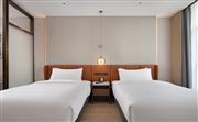 生活吧、定制冰箱、微波炉、免费 WiFi、宽敞浴室。宽敞现代的灵动江景房(双床)设有两张 135x200cm 睡床,房间面积为39平方米,创新的隐私屏、灵活的家具布置和创意区,为休闲、烹饪、工作提供灵活空间。放松的起居区配有沙发,旋转式 55 英寸电视可从套房的任何角度观看。利用多功能的滚轮移动桌、舒适座椅,营造出自己的空间。设施齐全的生活吧配备定制 80L 冰箱、微波炉、水槽、胶囊咖啡机及各种必要器具,方便在客房随时准备简餐,让您乐居无束。酒店可应要求提供希尔顿惠庭旅居厨具配套,满足您烹饪所需,包括电饭煲、电磁炉。