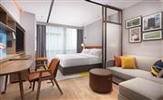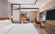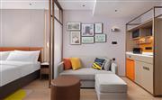 生活吧、定制冰箱、微波炉、免费 WiFi、沙发床。明亮现代的舒适房(大床)设有一张舒适大床,房间面积为 30 平方米,创新的隐私屏、灵活的家具布置和创意区,为休闲、烹饪、工作提供灵活空间。放松的起居区配有沙发,旋转式 55 英寸电视可从任何角度观看。利用移动桌和舒适座椅,营造出自己的空间。设施齐全的小厨房生活吧配备定制 40L 冰箱、微波炉、水槽、胶囊咖啡机及各种必要器具,方便在客房随时准备简餐。电饭煲、电磁炉等希尔顿惠庭旅居厨具配套,可应要求提供。舒适的浴室采用温暖色调、柔和照明,设有大梳妆台和步入式淋浴间。两个多功能衣柜和储物空间,提供额外的舒适环境和灵动功能。享用超舒适的床品,利用高清电视、免费 WiFi 随时保持联络。