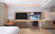 生活吧、定制冰箱、微波爐、免費 WiFi、沙發床、寬敞浴室。寬敞現代的靈動房(大床)設有一張特大床,房間面積為32平方米,創新的隱私屏、靈活的家具布置和創意區,為休閑、烹飪、工作提供靈活空間。放松的起居區配有沙發床,旋轉式 55 英寸電視可從套房的任何角度觀看。利用多功能的滾輪移動桌、舒適座椅,營造出自己的空間。設施齊全的生活吧配備定制 80L 冰箱、微波爐、水槽、膠囊咖啡機及各種必要器具,方便在客房隨時準備簡餐,讓您樂居無束。酒店可應要求提供希爾頓惠庭旅居廚具配套,滿足您烹飪所需,包括電飯煲、電磁爐。寬敞的浴室配有大梳妝臺、步入式淋浴間。