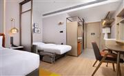 生活吧、定制冰箱、微波爐、免費 WiFi、沙發床、寬敞浴室。寬敞現代的靈動豪華房(大床)提供額外空間和設施,包括一張特大床,房間面積為32平方米,創新的隱私屏、靈活的家具布置和創意區,為休閑、烹飪、工作提供靈活空間。放松的起居區配有沙發床,旋轉式 55 英寸電視可從任何角度觀看。利用移動桌和舒適座椅,營造出自己的空間。設施齊全的生活吧配備定制 80L 冰箱、微波爐、水槽、膠囊咖啡機及各種必要器具,方便在客房隨時準備簡餐。電飯煲、電磁爐等希爾頓惠庭旅居廚具配套,可應要求提供。寬敞的浴室配有大梳妝臺、智能馬桶和步入式淋浴間。儲物收納靈活多樣,包括開放和封閉的衣柜,讓您入住期間享用更多放松空間。