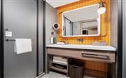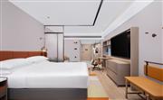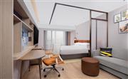 生活吧、定制冰箱、微波炉、免费 WiFi、沙发床、宽敞浴室。宽敞现代的灵动豪华房(大床)提供额外空间和设施,包括一张特大床,房间面积为36平方米,创新的隐私屏、灵活的家具布置和创意区,为休闲、烹饪、工作提供灵活空间。放松的起居区配有沙发床,旋转式 55 英寸电视可从任何角度观看。利用移动桌和舒适座椅,营造出自己的空间。设施齐全的生活吧配备定制 80L 冰箱、微波炉、水槽、胶囊咖啡机及各种必要器具,方便在客房随时准备简餐。电饭煲、电磁炉等希尔顿惠庭旅居厨具配套,可应要求提供。宽敞的浴室配有大梳妆台、智能马桶和步入式淋浴间。储物收纳灵活多样,包括开放和封闭的衣柜,让您入住期间享用更多放松空间。