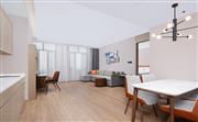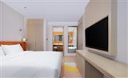 生活吧、定制冰箱、微波炉、免费 WiFi、沙发床、宽敞浴室。宽敞现代的套房(大床)设有一张特大床,房间面积为70平方米,创新的隐私屏、灵活的家具布置和创意区,为休闲、烹饪、工作提供灵活空间。放松的起居区配有沙发床,旋转式 55 英寸电视可从套房的任何角度观看。利用多功能的滚轮移动桌、舒适座椅,营造出自己的空间。设施齐全的生活吧配备定制 200L 冰箱、微波炉、水槽、胶囊咖啡机及各种必要器具,方便在客房随时准备简餐,让您乐居无束。酒店可应要求提供希尔顿惠庭旅居厨具配套,满足您烹饪所需,包括电饭煲、电磁炉。宽敞的浴室配有大梳妆台、步入式淋浴间。储物收纳灵活多样,包括开放和封闭的衣柜,让您入住期间享用更多放松空间。