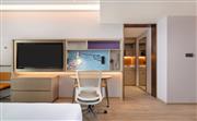 生活吧、定制冰箱、微波炉、免费 WiFi、宽敞浴室。宽敞现代的灵动房(双床)设有两张 135x200cm 睡床,房间面积为40平方米,创新的隐私屏、灵活的家具布置和创意区,为休闲、烹饪、工作提供灵活空间。放松的起居区配有沙发,旋转式 55 英寸电视可从套房的任何角度观看。利用多功能的滚轮移动桌、舒适座椅,营造出自己的空间。设施齐全的生活吧配备定制 80L 冰箱、微波炉、水槽、胶囊咖啡机及各种必要器具,方便在客房随时准备简餐,让您乐居无束。酒店可应要求提供希尔顿惠庭旅居厨具配套,满足您烹饪所需,包括电饭煲、电磁炉。