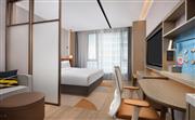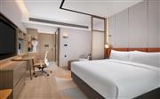 生活吧、定制冰箱、微波炉、免费 WiFi、沙发床、宽敞浴室。宽敞现代的灵动江景房(大床)设有一张特大床,房间面积为30平方米,创新的隐私屏、灵活的家具布置和创意区,为休闲、烹饪、工作提供灵活空间。放松的起居区配有沙发床,旋转式 55 英寸电视可从套房的任何角度观看。利用多功能的滚轮移动桌、舒适座椅,营造出自己的空间。设施齐全的生活吧配备定制 80L 冰箱、微波炉、水槽、胶囊咖啡机及各种必要器具,方便在客房随时准备简餐,让您乐居无束。酒店可应要求提供希尔顿惠庭旅居厨具配套,满足您烹饪所需,包括电饭煲、电磁炉。宽敞的浴室配有大梳妆台、步入式淋浴间。