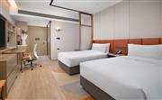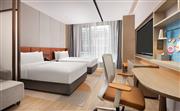 生活吧、定制冰箱、微波炉、免费 WiFi、宽敞浴室。宽敞现代的灵动江景房(双床)设有两张 135x200cm 睡床,房间面积为40平方米,创新的隐私屏、灵活的家具布置和创意区,为休闲、烹饪、工作提供灵活空间。放松的起居区配有沙发,旋转式 55 英寸电视可从套房的任何角度观看。利用多功能的滚轮移动桌、舒适座椅,营造出自己的空间。设施齐全的生活吧配备定制 80L 冰箱、微波炉、水槽、胶囊咖啡机及各种必要器具,方便在客房随时准备简餐,让您乐居无束。酒店可应要求提供希尔顿惠庭旅居厨具配套,满足您烹饪所需,包括电饭煲、电磁炉。