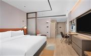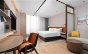 生活吧、定制冰箱、微波炉、免费 WiFi、沙发床、宽敞浴室。宽敞现代的灵动房(大床)设有一张特大床,房间面积为30平方米,创新的隐私屏、灵活的家具布置和创意区,为休闲、烹饪、工作提供灵活空间。放松的起居区配有沙发床,旋转式 55 英寸电视可从套房的任何角度观看。利用多功能的滚轮移动桌、舒适座椅,营造出自己的空间。设施齐全的生活吧配备定制 80L 冰箱、微波炉、水槽、胶囊咖啡机及各种必要器具,方便在客房随时准备简餐,让您乐居无束。酒店可应要求提供希尔顿惠庭旅居厨具配套,满足您烹饪所需,包括电饭煲、电磁炉。宽敞的浴室配有大梳妆台、步入式淋浴间。