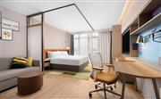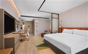 生活吧、定制冰箱、微波炉、免费 WiFi、沙发床、宽敞浴室。宽敞现代的灵动豪华房(大床)提供额外空间和设施,包括一张特大床,房间面积为35平方米,创新的隐私屏、灵活的家具布置和创意区,为休闲、烹饪、工作提供灵活空间。放松的起居区配有沙发床,旋转式 55 英寸电视可从任何角度观看。利用移动桌和舒适座椅,营造出自己的空间。设施齐全的生活吧配备定制 80L 冰箱、微波炉、水槽、胶囊咖啡机及各种必要器具,方便在客房随时准备简餐。电饭煲、电磁炉等希尔顿惠庭旅居厨具配套,可应要求提供。宽敞的浴室配有大梳妆台、智能马桶和步入式淋浴间。储物收纳灵活多样,包括开放和封闭的衣柜,让您入住期间享用更多放松空间。