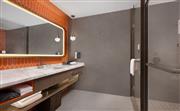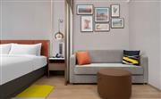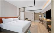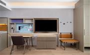生活吧、定制冰箱、微波炉、免费 WiFi、沙发床、宽敞浴室。宽敞现代的灵动豪华房(大床)提供额外空间和设施,包括一张特大床,房间面积为35平方米,创新的隐私屏、灵活的家具布置和创意区,为休闲、烹饪、工作提供灵活空间。放松的起居区配有沙发床,旋转式 55 英寸电视可从任何角度观看。利用移动桌和舒适座椅,营造出自己的空间。设施齐全的生活吧配备定制 80L 冰箱、微波炉、水槽、胶囊咖啡机及各种必要器具,方便在客房随时准备简餐。电饭煲、电磁炉等希尔顿惠庭旅居厨具配套,可应要求提供。宽敞的浴室配有大梳妆台、智能马桶和步入式淋浴间。储物收纳灵活多样,包括开放和封闭的衣柜,让您入住期间享用更多放松空间。