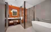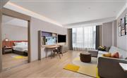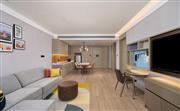 生活吧、定制冰箱、微波炉、免费 WiFi、沙发床、宽敞浴室。宽敞现代的套房(大床)设有一张特大床,房间面积为60平方米,创新的隐私屏、灵活的家具布置和创意区,为休闲、烹饪、工作提供灵活空间。放松的起居区配有沙发床,旋转式 55 英寸电视可从套房的任何角度观看。利用多功能的滚轮移动桌、舒适座椅,营造出自己的空间。设施齐全的生活吧配备定制 200L 冰箱、微波炉、水槽、胶囊咖啡机及各种必要器具,方便在客房随时准备简餐,让您乐居无束。酒店可应要求提供希尔顿惠庭旅居厨具配套,满足您烹饪所需,包括电饭煲、电磁炉。宽敞的浴室配有大梳妆台、步入式淋浴间。储物收纳灵活多样,包括开放和封闭的衣柜,让您入住期间享用更多放松空间。