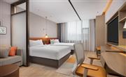 生活吧、定制冰箱、微波炉、免费 WiFi、宽敞浴室。宽敞现代的灵动房(双床)设有两张 135x200cm 睡床,房间面积为30平方米,创新的隐私屏、灵活的家具布置和创意区,为休闲、烹饪、工作提供灵活空间。放松的起居区配有沙发,旋转式 55 英寸电视可从套房的任何角度观看。利用多功能的滚轮移动桌、舒适座椅,营造出自己的空间。设施齐全的生活吧配备定制 80L 冰箱、微波炉、水槽、胶囊咖啡机及各种必要器具,方便在客房随时准备简餐,让您乐居无束。酒店可应要求提供希尔顿惠庭旅居厨具配套,满足您烹饪所需,包括电饭煲、电磁炉。