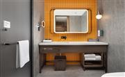 生活吧、定制冰箱、微波炉、免费 WiFi、宽敞浴室。宽敞现代的灵动园景房(双床)设有两张 135x200cm 睡床,房间面积为30平方米,创新的隐私屏、灵活的家具布置和创意区,为休闲、烹饪、工作提供灵活空间。放松的起居区配有沙发,旋转式 55 英寸电视可从套房的任何角度观看。利用多功能的滚轮移动桌、舒适座椅,营造出自己的空间。设施齐全的生活吧配备定制 80L 冰箱、微波炉、水槽、胶囊咖啡机及各种必要器具,方便在客房随时准备简餐,让您乐居无束。酒店可应要求提供希尔顿惠庭旅居厨具配套,满足您烹饪所需,包括电饭煲、电磁炉。