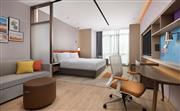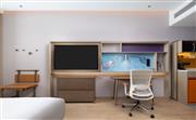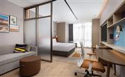 生活吧、定制冰箱、微波炉、免费 WiFi、沙发床、宽敞浴室。宽敞现代的灵动豪华房(大床)提供额外空间和设施,包括一张特大床,房间面积为35平方米,创新的隐私屏、灵活的家具布置和创意区,为休闲、烹饪、工作提供灵活空间。放松的起居区配有沙发床,旋转式 55 英寸电视可从任何角度观看。利用移动桌和舒适座椅,营造出自己的空间。设施齐全的生活吧配备定制 80L 冰箱、微波炉、水槽、胶囊咖啡机及各种必要器具,方便在客房随时准备简餐。电饭煲、电磁炉等希尔顿惠庭旅居厨具配套,可应要求提供。宽敞的浴室配有大梳妆台、智能马桶和步入式淋浴间。储物收纳灵活多样,包括开放和封闭的衣柜,让您入住期间享用更多放松空间。