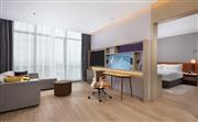 生活吧、定制冰箱、微波炉、免费 WiFi、沙发床、宽敞浴室。宽敞现代的套房(大床)设有一张特大床,房间面积为60平方米,创新的隐私屏、灵活的家具布置和创意区,为休闲、烹饪、工作提供灵活空间。放松的起居区配有沙发床,旋转式 55 英寸电视可从套房的任何角度观看。利用多功能的滚轮移动桌、舒适座椅,营造出自己的空间。设施齐全的生活吧配备定制 200L 冰箱、微波炉、水槽、胶囊咖啡机及各种必要器具,方便在客房随时准备简餐,让您乐居无束。酒店可应要求提供希尔顿惠庭旅居厨具配套,满足您烹饪所需,包括电饭煲、电磁炉。宽敞的浴室配有大梳妆台、步入式淋浴间。储物收纳灵活多样,包括开放和封闭的衣柜,让您入住期间享用更多放松空间。