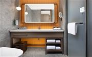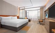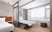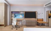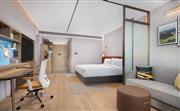 生活吧、定制冰箱、微波炉、免费 WiFi、沙发床、宽敞浴室。宽敞现代的灵动豪华房(大床)提供额外空间和设施,包括一张特大床,房间面积为48平方米,创新的隐私屏、灵活的家具布置和创意区,为休闲、烹饪、工作提供灵活空间。放松的起居区配有沙发床,旋转式 55 英寸电视可从任何角度观看。利用移动桌和舒适座椅,营造出自己的空间。设施齐全的生活吧配备定制 80L 冰箱、微波炉、水槽、胶囊咖啡机及各种必要器具,方便在客房随时准备简餐。电饭煲、电磁炉等希尔顿惠庭旅居厨具配套,可应要求提供。宽敞的浴室配有大梳妆台、智能马桶和步入式淋浴间。储物收纳灵活多样,包括开放和封闭的衣柜,让您入住期间享用更多放松空间。