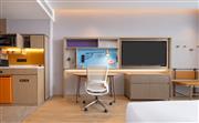 生活吧、定制冰箱、微波炉、免费 WiFi、宽敞浴室。宽敞现代的灵动高级房(双床)提供额外空间和设施,包括两张 135x200cm 睡床,房间面积为40平方米,创新的隐私屏、灵活的家具布置和创意区,为休闲、烹饪、工作提供灵活空间。放松的起居区配有旋转式 55 英寸电视,可从任何角度观看。利用移动桌和舒适座椅,营造出自己的空间。设施齐全的生活吧配备定制 80L 冰箱、微波炉、水槽、胶囊咖啡机及各种必要器具,方便在客房随时准备简餐。电饭煲、电磁炉等希尔顿惠庭旅居厨具配套,可应要求提供。宽敞的浴室配有大梳妆台、智能马桶和步入式淋浴间。储物收纳灵活多样,包括开放和封闭的衣柜,让您入住期间享用更多放松空间。
