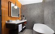 生活吧、定制冰箱、微波炉、免费 WiFi、沙发床、宽敞浴室。宽敞现代的灵动房(大床)设有一张特大床,房间面积为71平方米,创新的隐私屏、灵活的家具布置和创意区,为休闲、烹饪、工作提供灵活空间。放松的起居区配有沙发床,旋转式 55 英寸电视可从套房的任何角度观看。利用多功能的滚轮移动桌、舒适座椅,营造出自己的空间。设施齐全的生活吧配备定制 200L 冰箱、微波炉、水槽、电热咖啡壶及各种必要器具,方便在客房随时准备简餐,让您乐居无束。酒店可应要求提供希尔顿惠庭旅居厨具配套,满足您烹饪所需,包括电饭煲、电磁炉。宽敞的浴室配有大梳妆台、步入式淋浴间。
