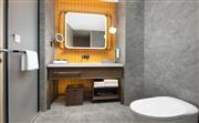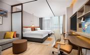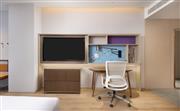 生活吧、定制冰箱、微波炉、免费 WiFi、宽敞浴室。宽敞现代的灵动房(双床)设有两张 135x200cm 睡床,房间面积为41平方米,创新的隐私屏、灵活的家具布置和创意区,为休闲、烹饪、工作提供灵活空间。放松的起居区配有沙发,旋转式 55 英寸电视可从套房的任何角度观看。利用多功能的滚轮移动桌、舒适座椅,营造出自己的空间。设施齐全的生活吧配备定制 80L 冰箱、微波炉、水槽、胶囊咖啡机及各种必要器具,方便在客房随时准备简餐,让您乐居无束。酒店可应要求提供希尔顿惠庭旅居厨具配套,满足您烹饪所需,包括电饭煲、电磁炉。