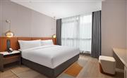生活吧、定制冰箱、微波炉、免费 WiFi、沙发床、宽敞浴室。宽敞现代的园景套房(大床)设有一张特大床,房间面积为86平方米,创新的隐私屏、灵活的家具布置和创意区,为休闲、烹饪、工作提供灵活空间。放松的起居区配有沙发床,旋转式 55 英寸电视可从套房的任何角度观看。利用多功能的滚轮移动桌、舒适座椅,营造出自己的空间。设施齐全的生活吧配备定制 200L 冰箱、微波炉、水槽、胶囊咖啡机及各种必要器具,方便在客房随时准备简餐,让您乐居无束。酒店可应要求提供希尔顿惠庭旅居厨具配套,满足您烹饪所需,包括电饭煲、电磁炉。宽敞的浴室配有大梳妆台、步入式淋浴间。储物收纳灵活多样,包括开放和封闭的衣柜,让您入住期间享用更多放松空间。