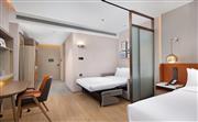 生活吧、定制冰箱、微波爐、免費 WiFi、沙發床、寬敞浴室。寬敞現代的靈動房(大床)設有一張特大床,房間面積為30平方米,創新的隱私屏、靈活的家具布置和創意區,為休閑、烹飪、工作提供靈活空間。放松的起居區配有沙發床,旋轉式 55 英寸電視可從套房的任何角度觀看。利用多功能的滾輪移動桌、舒適座椅,營造出自己的空間。設施齊全的生活吧配備定制 80L 冰箱、微波爐、水槽、膠囊咖啡機及各種必要器具,方便在客房隨時準備簡餐,讓您樂居無束。酒店可應要求提供希爾頓惠庭旅居廚具配套,滿足您烹飪所需,包括電飯煲、電磁爐。寬敞的浴室配有大梳妝臺、步入式淋浴間。