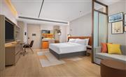 生活吧、定制冰箱、微波爐、免費 WiFi、沙發床、寬敞浴室。寬敞現代的靈動高級房(大床)提供額外空間和設施,包括一張特大床,房間面積為35平方米,創新的隱私屏、靈活的家具布置和創意區,為休閑、烹飪、工作提供靈活空間。放松的起居區配有沙發床,旋轉式 55 英寸電視可從任何角度觀看。利用移動桌和舒適座椅,營造出自己的空間。設施齊全的生活吧配備定制 80L 冰箱、微波爐、水槽、膠囊咖啡機及各種必要器具,方便在客房隨時準備簡餐。電飯煲、電磁爐等希爾頓惠庭旅居廚具配套,可應要求提供。寬敞的浴室配有大梳妝臺、智能馬桶和步入式淋浴間。儲物收納靈活多樣,包括開放和封閉的衣柜,讓您入住期間享用更多放松空間。