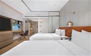 生活吧、定制冰箱、微波爐、免費 WiFi、寬敞浴室。寬敞現代的靈動高級房(雙床)提供額外空間和設施,包括兩張 135x200cm 睡床,房間面積為30平方米,創新的隱私屏、靈活的家具布置和創意區,為休閑、烹飪、工作提供靈活空間。放松的起居區配有旋轉式 55 英寸電視,可從任何角度觀看。利用移動桌和舒適座椅,營造出自己的空間。設施齊全的生活吧配備定制 80L 冰箱、微波爐、水槽、膠囊咖啡機及各種必要器具,方便在客房隨時準備簡餐。電飯煲、電磁爐等希爾頓惠庭旅居廚具配套,可應要求提供。寬敞的浴室配有大梳妝臺、智能馬桶和步入式淋浴間。儲物收納靈活多樣,包括開放和封閉的衣柜,讓您入住期間享用更多放松空間。