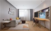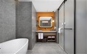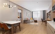 生活吧、定制冰箱、微波爐、免費 WiFi、沙發床、寬敞浴室。寬敞現代的套房(大床)設有一張特大床,房間面積為65平方米,創新的隱私屏、靈活的家具布置和創意區,為休閑、烹飪、工作提供靈活空間。放松的起居區配有沙發床,旋轉式 55 英寸電視可從套房的任何角度觀看。利用多功能的滾輪移動桌、舒適座椅,營造出自己的空間。設施齊全的生活吧配備定制 200L 冰箱、微波爐、水槽、膠囊咖啡機及各種必要器具,方便在客房隨時準備簡餐,讓您樂居無束。酒店可應要求提供希爾頓惠庭旅居廚具配套,滿足您烹飪所需,包括電飯煲、電磁爐。寬敞的浴室配有大梳妝臺、步入式淋浴間。儲物收納靈活多樣,包括開放和封閉的衣柜,讓您入住期間享用更多放松空間。