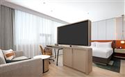 生活吧、定制冰箱、微波爐、免費 WiFi、沙發床、寬敞浴室。寬敞現代的靈動豪華房(大床)提供額外空間和設施,包括一張特大床,房間面積為37平方米,創新的隱私屏、靈活的家具布置和創意區,為休閑、烹飪、工作提供靈活空間。放松的起居區配有沙發床,旋轉式 55 英寸電視可從任何角度觀看。利用移動桌和舒適座椅,營造出自己的空間。設施齊全的生活吧配備定制 80L 冰箱、微波爐、水槽、膠囊咖啡機及各種必要器具,方便在客房隨時準備簡餐。電飯煲、電磁爐等希爾頓惠庭旅居廚具配套,可應要求提供。寬敞的浴室配有大梳妝臺、智能馬桶和步入式淋浴間。儲物收納靈活多樣,包括開放和封閉的衣柜,讓您入住期間享用更多放松空間。