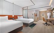 生活吧、定制冰箱、微波爐、免費 WiFi、寬敞浴室。寬敞現代的靈動豪華房(雙床)提供額外空間和設施,包括兩張 135x200cm 睡床,房間面積為31平方米,創新的隱私屏、靈活的家具布置和創意區,為休閑、烹飪、工作提供靈活空間。放松的起居區配有旋轉式 55 英寸電視,可從任何角度觀看。利用移動桌和舒適座椅,營造出自己的空間。設施齊全的生活吧配備定制 80L 冰箱、微波爐、水槽、膠囊咖啡機及各種必要器具,方便在客房隨時準備簡餐。電飯煲、電磁爐等希爾頓惠庭旅居廚具配套,可應要求提供。寬敞的浴室配有大梳妝臺、智能馬桶和步入式淋浴間。儲物收納靈活多樣,包括開放和封閉的衣柜,讓您入住期間享用更多放松空間。