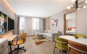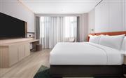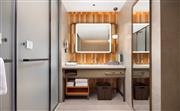 生活吧、定制冰箱、微波爐、免費 WiFi、沙發床、寬敞浴室。寬敞現代的套房(大床)設有一張特大床,房間面積為62平方米,創新的隱私屏、靈活的家具布置和創意區,為休閑、烹飪、工作提供靈活空間。放松的起居區配有沙發床,旋轉式 55 英寸電視可從套房的任何角度觀看。利用多功能的滾輪移動桌、舒適座椅,營造出自己的空間。設施齊全的生活吧配備定制 200L 冰箱、微波爐、水槽、膠囊咖啡機及各種必要器具,方便在客房隨時準備簡餐,讓您樂居無束。酒店可應要求提供希爾頓惠庭旅居廚具配套,滿足您烹飪所需,包括電飯煲、電磁爐。寬敞的浴室配有大梳妝臺、步入式淋浴間。儲物收納靈活多樣,包括開放和封閉的衣柜,讓您入住期間享用更多放松空間。