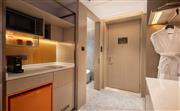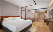 生活吧、定制冰箱、微波爐、免費 WiFi、沙發床、寬敞浴室。寬敞現代的靈動豪華房(大床)提供額外空間和設施,包括一張特大床,房間面積為32平方米,創新的隱私屏、靈活的家具布置和創意區,為休閑、烹飪、工作提供靈活空間。放松的起居區配有沙發床,旋轉式 55 英寸電視可從任何角度觀看。利用移動桌和舒適座椅,營造出自己的空間。設施齊全的生活吧配備定制 80L 冰箱、微波爐、水槽、膠囊咖啡機及各種必要器具,方便在客房隨時準備簡餐。電飯煲、電磁爐等希爾頓惠庭旅居廚具配套,可應要求提供。寬敞的浴室配有大梳妝臺、智能馬桶和步入式淋浴間。儲物收納靈活多樣,包括開放和封閉的衣柜,讓您入住期間享用更多放松空間。